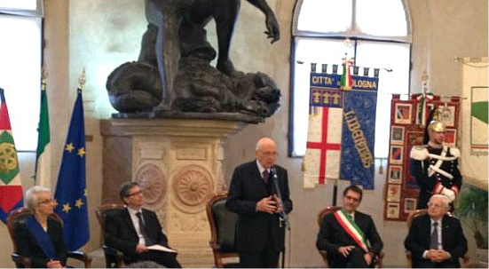 Ascolta e scarica gli interventi del Sindaco di Bologna Virginio Merola, della Presidente della Provincia di Bologna Beatrice Draghetti, del Presidente della Regione Emilia-Romagna e del Presidente della Repubblica Giorgio Napolitano.